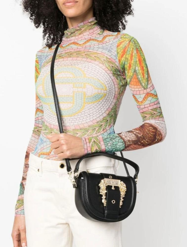 حقيبة عصرية بتصميم سرج الخيل من Versace Jeans Couture. تتميز بتفاصيل ذهبية فاخرة وشعار رأس الميدوسا الأيقوني، مما يمنحها لمسة من الجرأة والفخامة. مصنوعة من جلد عالي الجودة لتناسب إطلالتك اليومية أو المسائية. متوفرة بألوان متعددة. قطعة أساسية للمرأة الواثقة والجريئة.